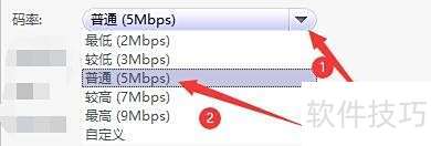 - 点击码率按钮,在弹出的选项中选择所需码率,例如选择普通(5Mbps)即可完成设置。