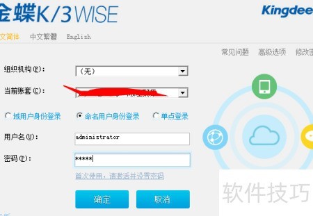 - 返回登录页面,输入与金蝶主界面相同的账号密码即可。