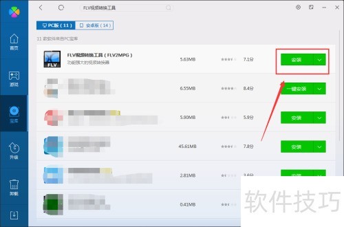 在软件管理界面顶部搜索框输入FLV视频转换工具 ,找到并点击安装进行下载和使用。