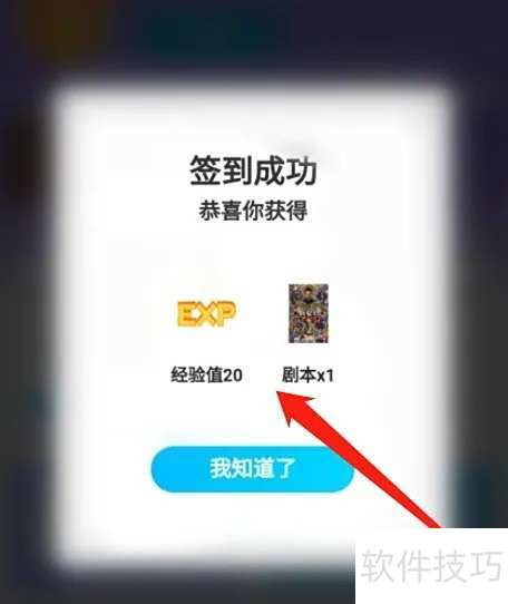 - 完成签到后,在成功提示框中点击我知道了即可。