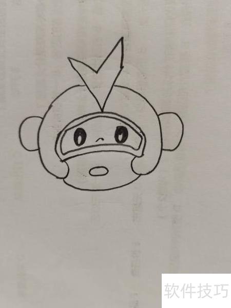 沿着眼罩轮廓,将安全小卫士的头盔完整描绘出来。