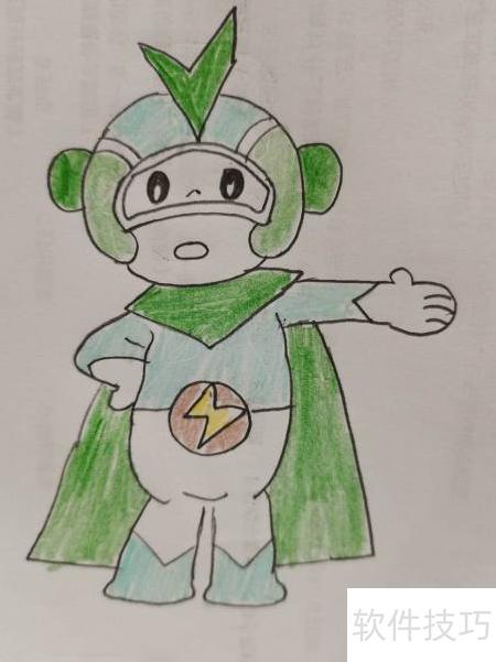 最后涂上颜色,这幅安全小卫士简笔画就完成了。
