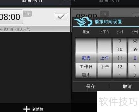 语音闹钟的优势在于丰富的定制选项,你可以根据需要添加多个闹钟来应对不同的提醒需求。要增加一个新的闹钟呢?只需轻触页面底部的“+新添加”按钮,并选择你想要设定的时间段即可轻松完成设置。这个功能不仅操作简单,而且实用性强,能够帮助你在忙碌的时候精准地唤醒自己。