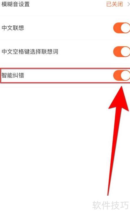 趣键盘开启智能纠错后,后续圆点变橙色即表示功能已成功启用。
