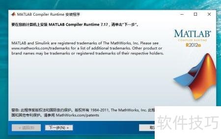 安装适用于Windows系统的32位MATLAB Compiler Runtime R2012a(版本7.17)。