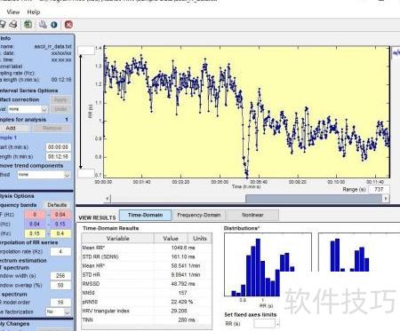启动Kubios HRV软件,完成设置后导入RR间期数据,即可开展心率变异性分析。