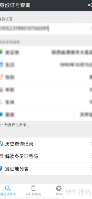 - 打开身份证查询页面,按图示输入身份证号码即可。