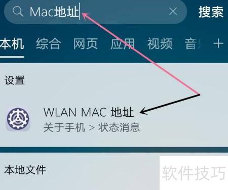 - 从屏幕下滑出快捷方式,在搜索框输入MAC地址即可查询,操作所示。
