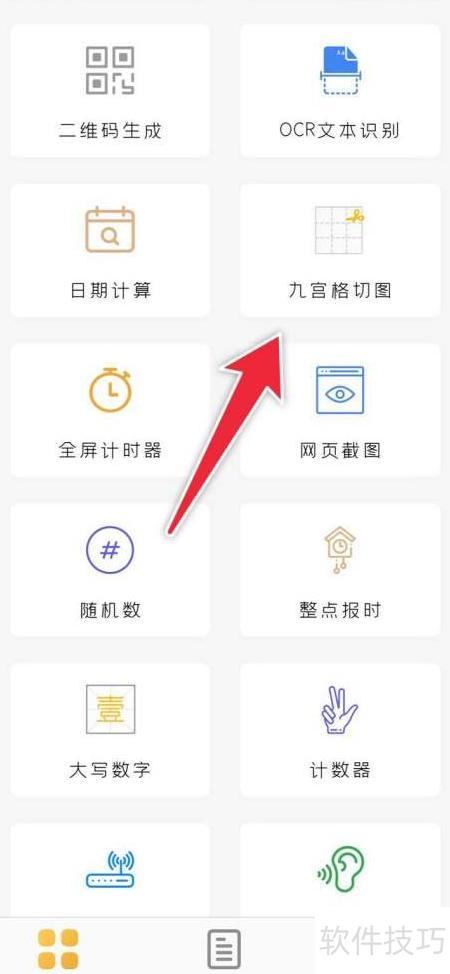 全能工具箱支持九宫格切图,可一键将照片分割成九等分。