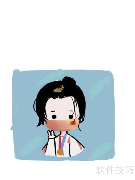 - 最后画出左手,并填充蓝色背景即可完成。