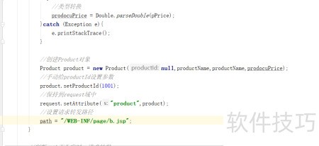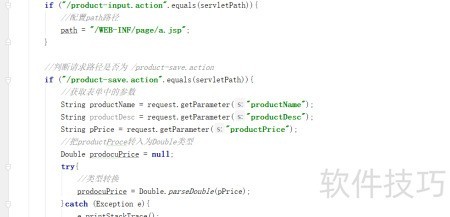 在IndexFilter.java的doFilter方法中,判断当前请求路径是否为/product-save.action。若是,则提取表单中的参数,将pPrice转换为Double类型,封装成Product对象,并将其存入request域中,最后设置相应的跳转路径,完成请求转发处理流程。