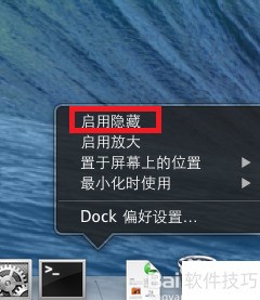 此时会弹出一个菜单,选择启动隐藏后,Dock栏将默认处于隐藏状态。只有当鼠标指针移动到屏幕下方的预设位置时,Dock栏才会自动显现。