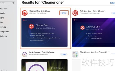 - 在Mac的App Store中搜索Cleaner One,找到后点击下载即可。