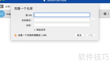 - 打开SourceTree,新建项目,选择通过URL地址进行克隆操作。