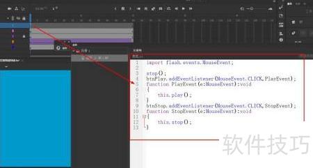 打开动作面板,输入所示代码。