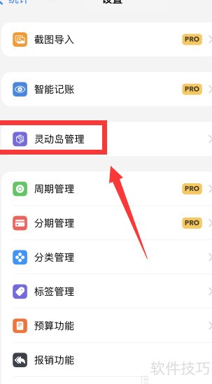 进入icost软件设置,选择并点击灵动岛管理选项。