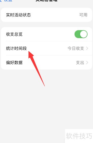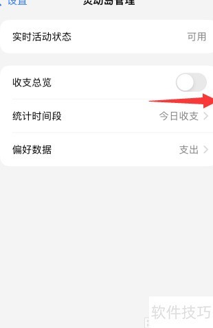 进入灵动岛设置,开启收支总览功能开关即可。