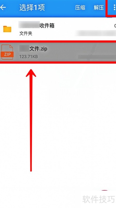 - 打开解压缩全能王,选择文件后点击右上角三点图标即可操作。