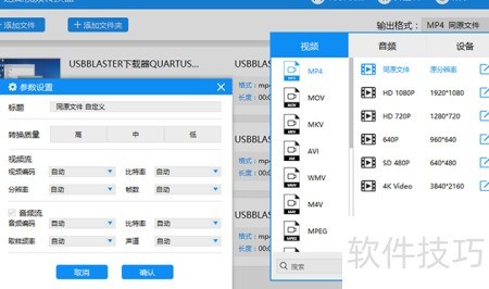 - 设置好保存地址后,选择输出格式中的视频,点击MP4及分辨率,双击确认即可。