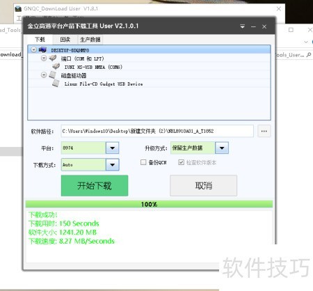- 安装驱动后,启动刷机工具,选取Download_Tools_User_V2.1.0.1版本进行刷机操作。