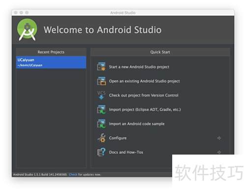 - 打开Android Studio,进入首页后,可根据需要选择相应操作选项。