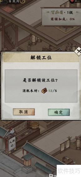 此时将弹出解锁工位提示框,点击确定并消耗5个木材,即可成功解锁百业司的工位。