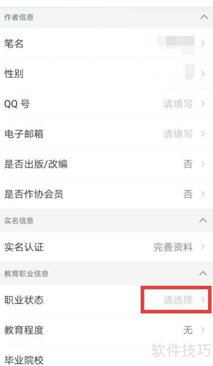 在作家助手中将职业状态设为学生