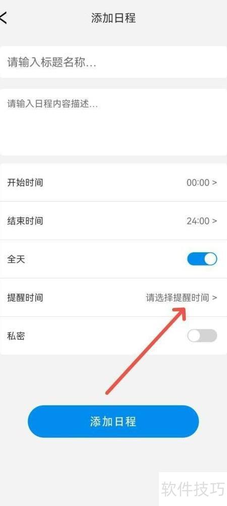进入日程编辑界面后,选取提醒时间选项