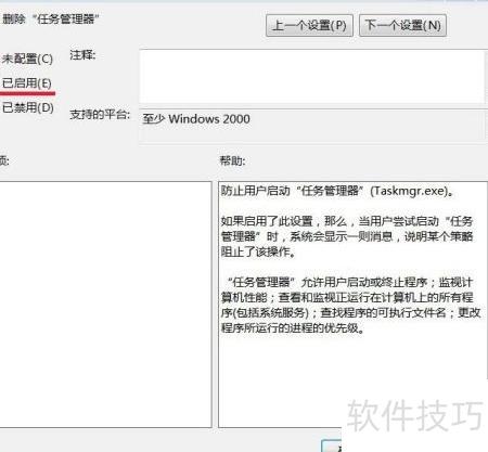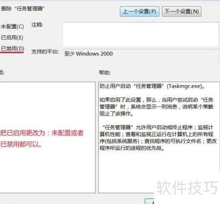 双击左键打开任务管理器,切换其状态为未启用,然后关闭组策略编辑器以完成更改。