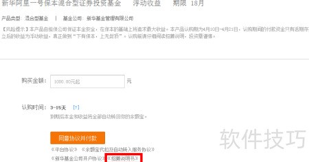 进入招财宝页面后,当前仅新华阿里一号保本混合基金可供购买。