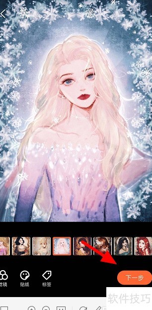 为图片添加滤镜和贴纸后,即可进入下一步操作。