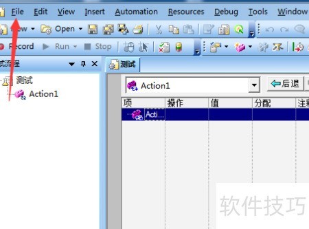 在QTP软件界面中,点击文件菜单选项。