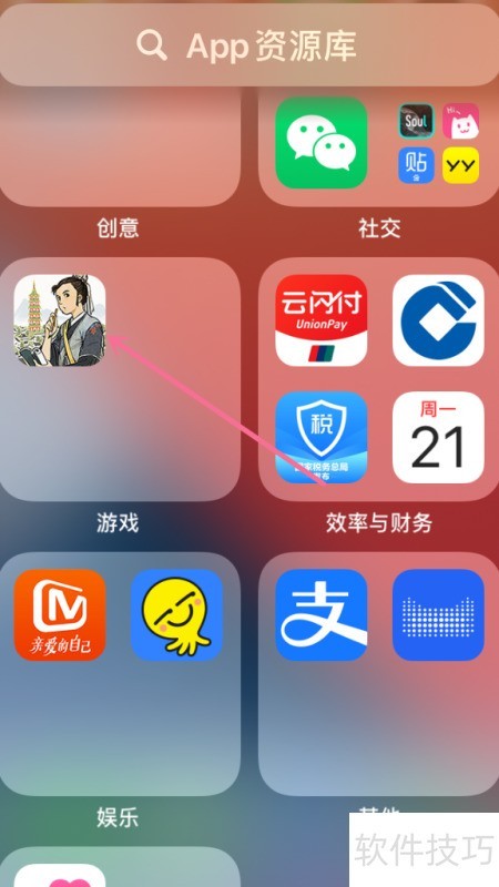 在App资源库的游戏分类里找到并点击江南百景图图标。
