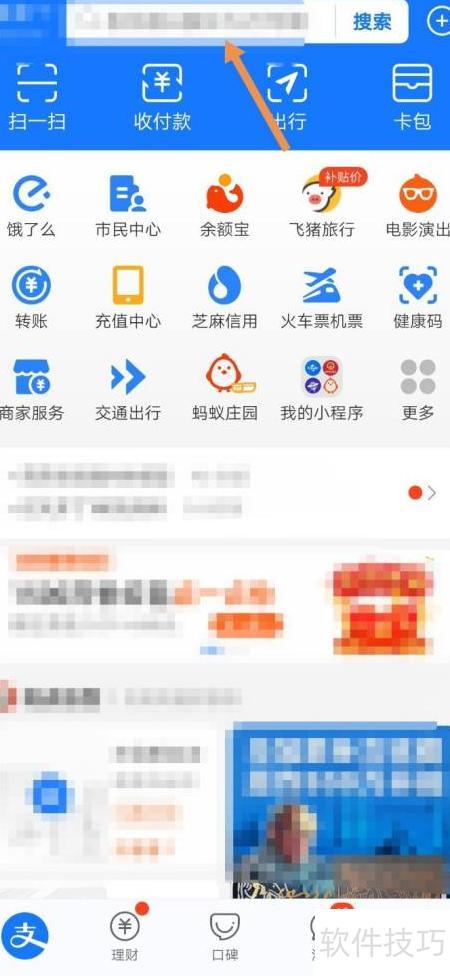 打开支付宝,点击搜索栏输入。