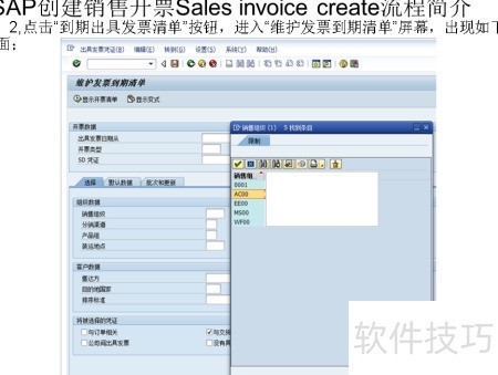 根据销售组织、售达方等条件筛选,确定开票清单的显示范围。