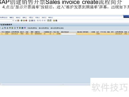 点击显示开票清单后,跳转至维护发票到期清单页面,界面如下所示。