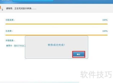 音频文件正在转换格式,完成后将弹出提示框,请点击确定继续操作。