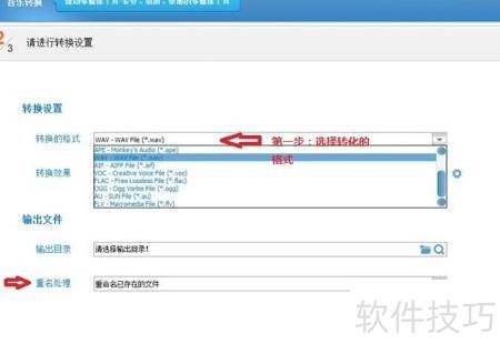 4、 进入转换设置页面,需先设定输出格式。点击格式选项,选取所需文件类型,此处选择WAV格式进行转换。