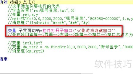子界面句柄变量通过控件打开火影游戏隐藏窗口获取。