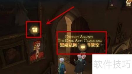 进入城堡主楼的黑魔法防御课教室,门左画像正是线索所指的探险家。