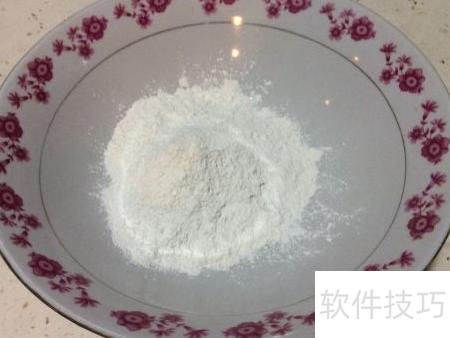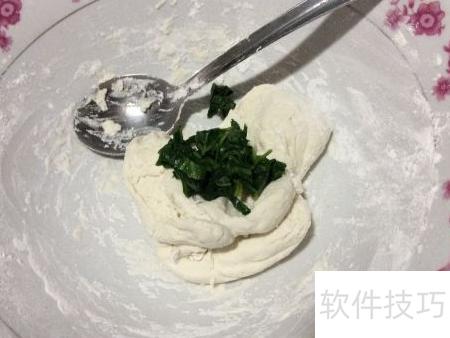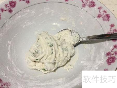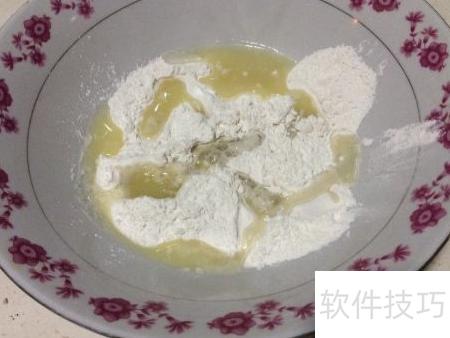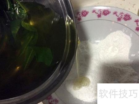 把糯米粉放入碗里,冲入适量滚烫的蒲公英水,搅拌均匀即可。