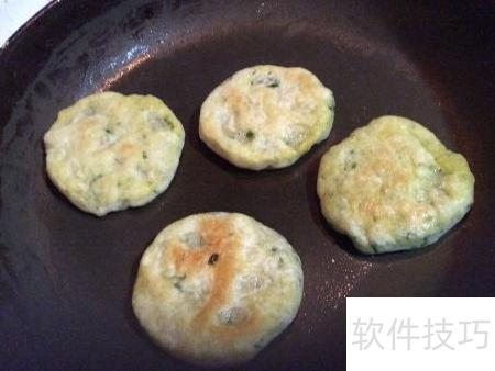 在小平底锅上涂抹一层薄薄的油,将饼坯放进去用中火加热。记得时不时地用筷子轻轻推动它,确保受热均匀。待一面变为金黄色后翻面,继续煎至另一面也呈现出诱人的金黄色即可出锅享用。