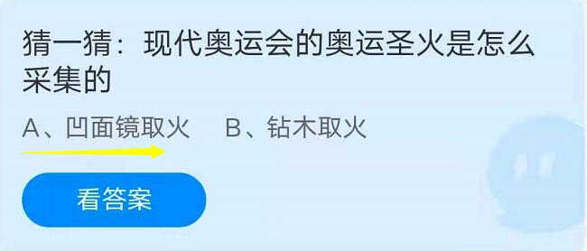 蚂蚁庄园猜一猜:现代奥运会的奥运圣火是怎么采集的?
