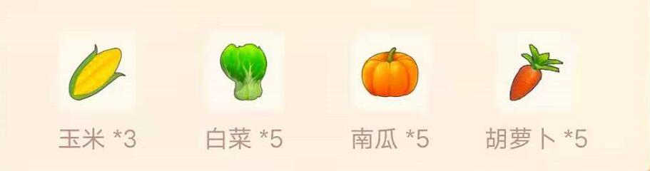 1、玉米*3、白菜*5、南瓜*、胡萝卜*5