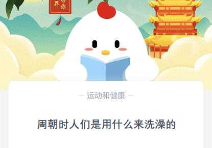 游家吧小编整理了周朝人用什么水洗澡:支付宝蚂蚁庄园小课堂11月27日的第一个问题是:周朝时人们是用什么来洗澡的?这道题考察我们对古代人生活的了解,一起来看下正确回答吧。,想要了解相关的内容持续关注吧!