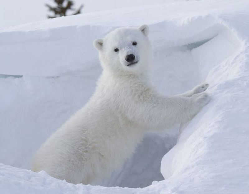 北极熊的皮肤呈黑色,可从鼻头、爪垫、嘴唇以及眼睛四周的黑皮肤看出皮肤的原貌。