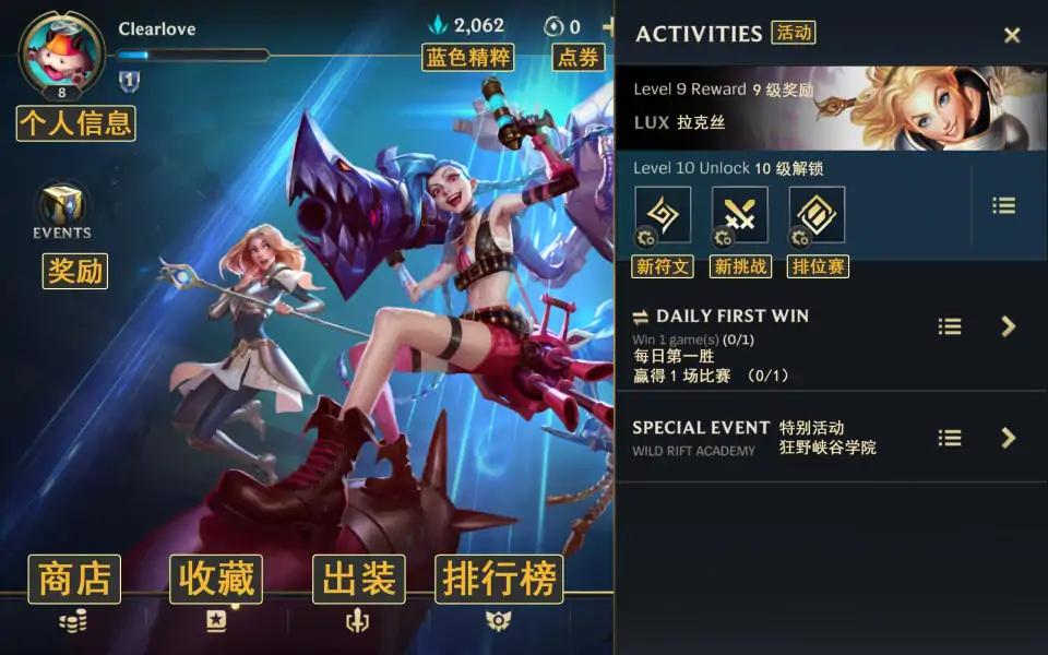 完成峡谷新手任务将得一个英雄、特机动作,一个皮肤。