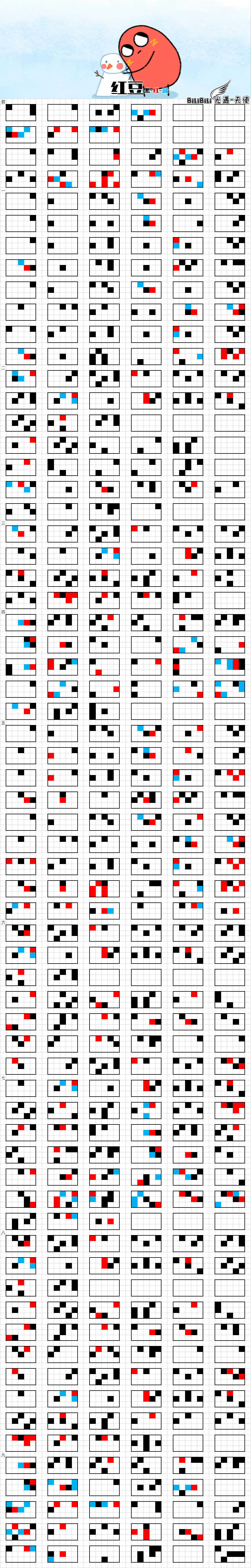 1、图画版:(按黑-红-蓝顺序弹奏,同框同色要一起按)