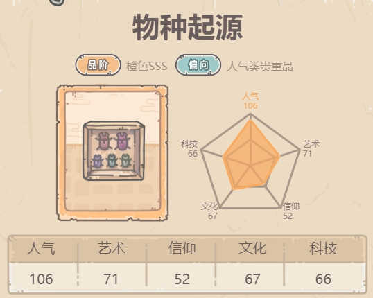 游家吧小编带来了最强蜗牛物种起源介绍:最强蜗牛中,物种起源是一个橙色SSS级品质人气类的贵重品,这个贵重品是进化论的奠基之作,是达尔文经过长达5年的环球航行考察,通过各地的物种观察记录作为证据,发表的物种起源,这本书不仅是生物学界的革命,下面一起来看看相关的内容介绍。