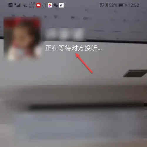 拨通视频电话后,手机上会显示等待对方接听。